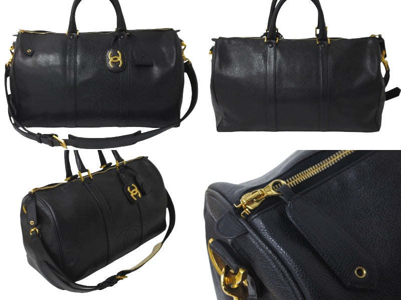 CHANEL シャネル 2WAY ボストンバッグ キャビアスキン ブラック 3番台 ゴールド金具 ココマーク 旅行バッグ 鞄 美品 中古 59604