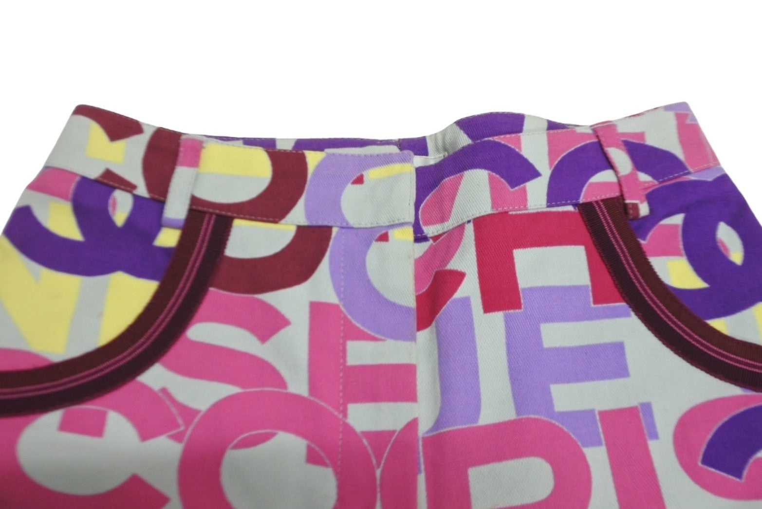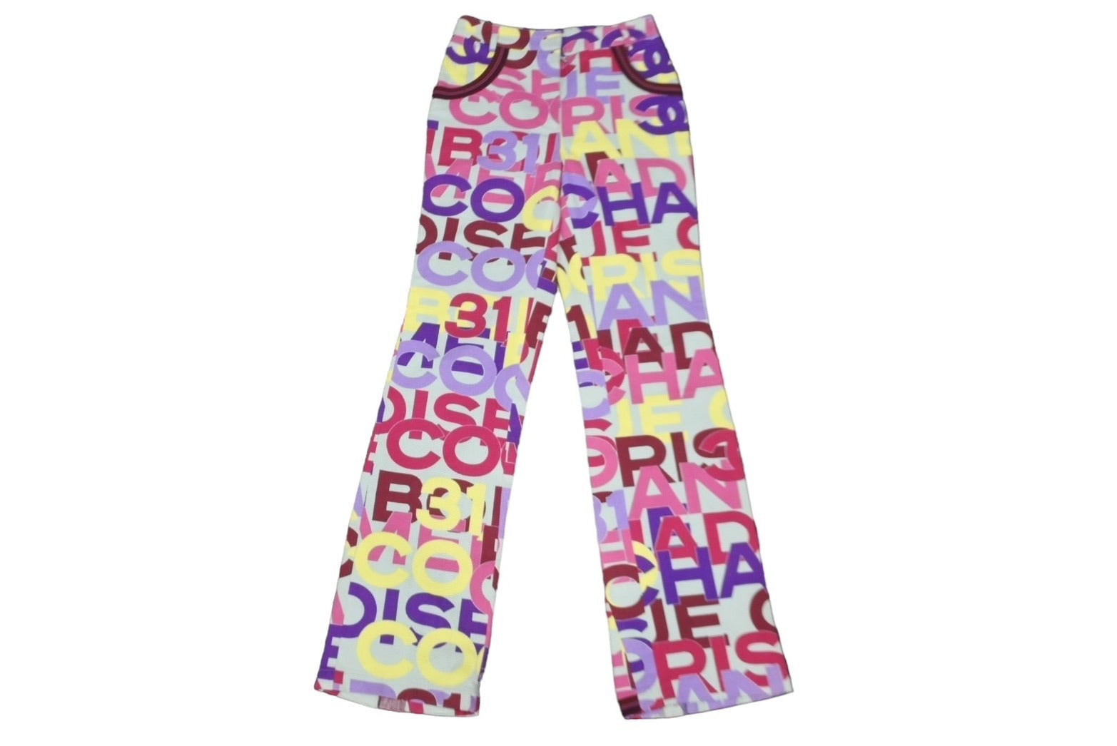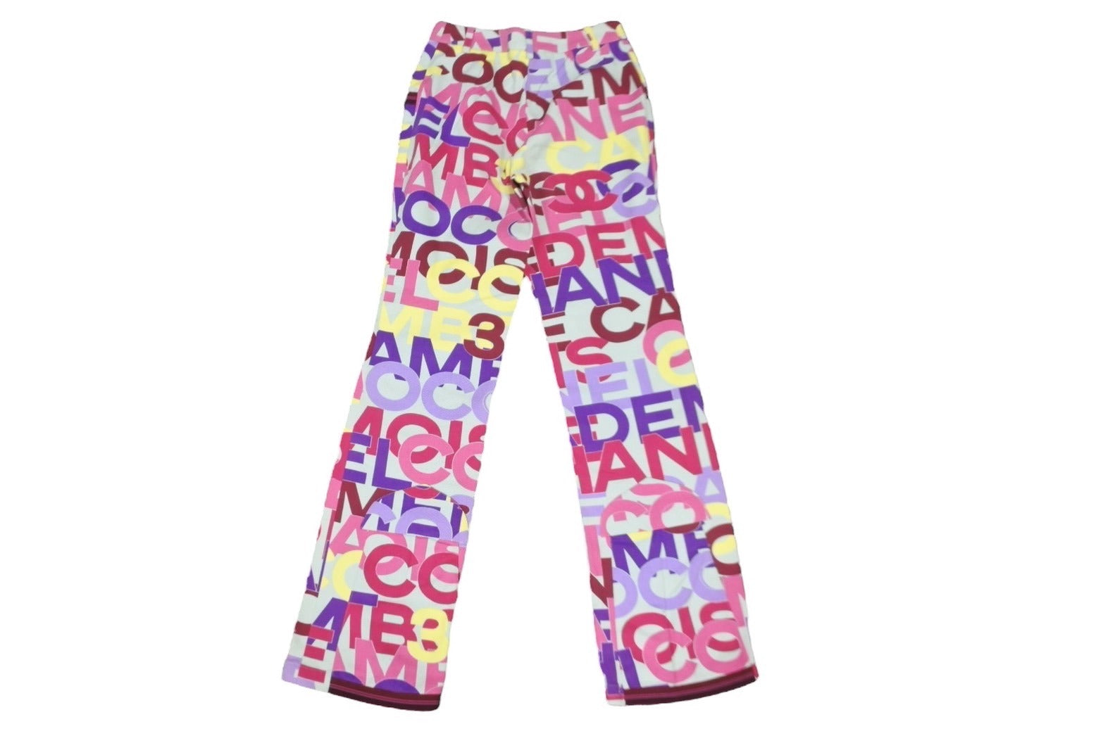 存在感のあるカラーリングで全体に文字とココマークがデザインされた個性的なパンツです。