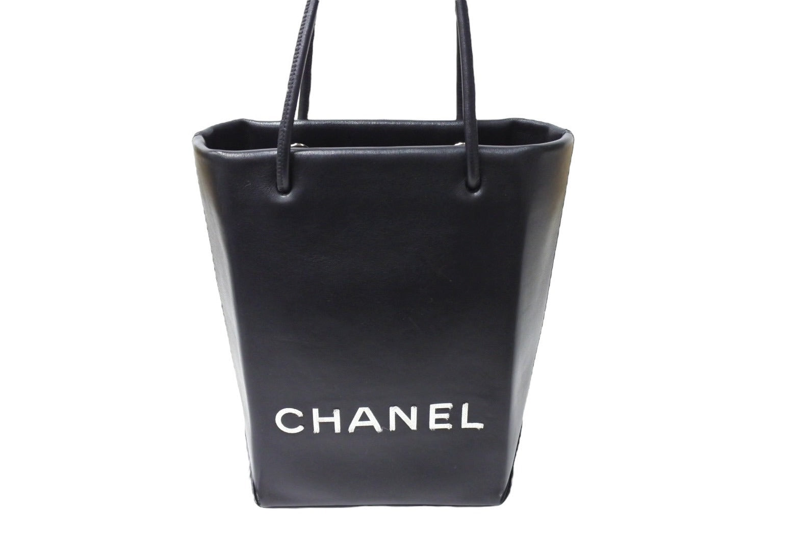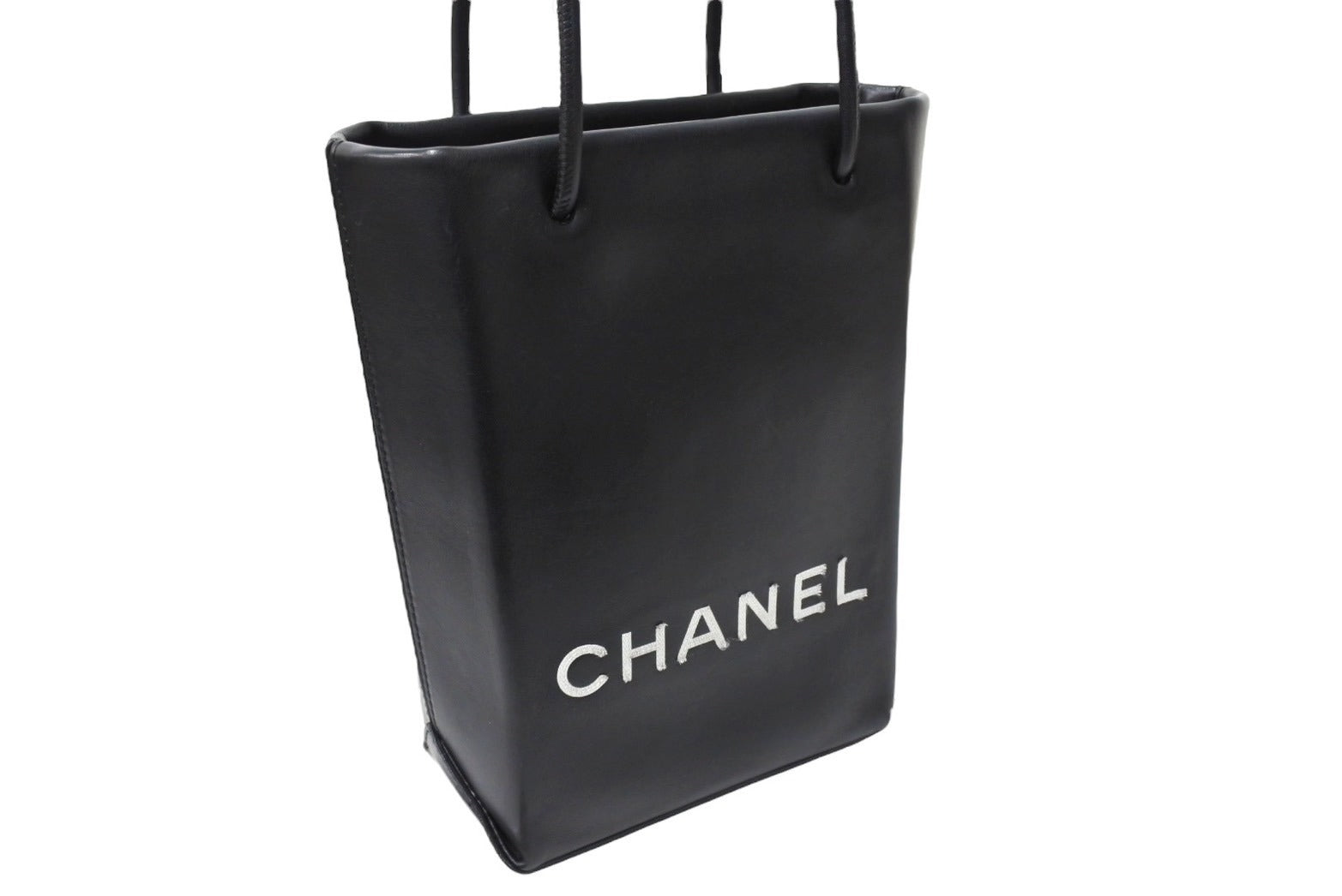 CHANEL シャネル エッセンシャル ハンドバッグ 12番台 A46880 ラムスキン ロゴ ブラック シルバー金具 美品 中古 65939