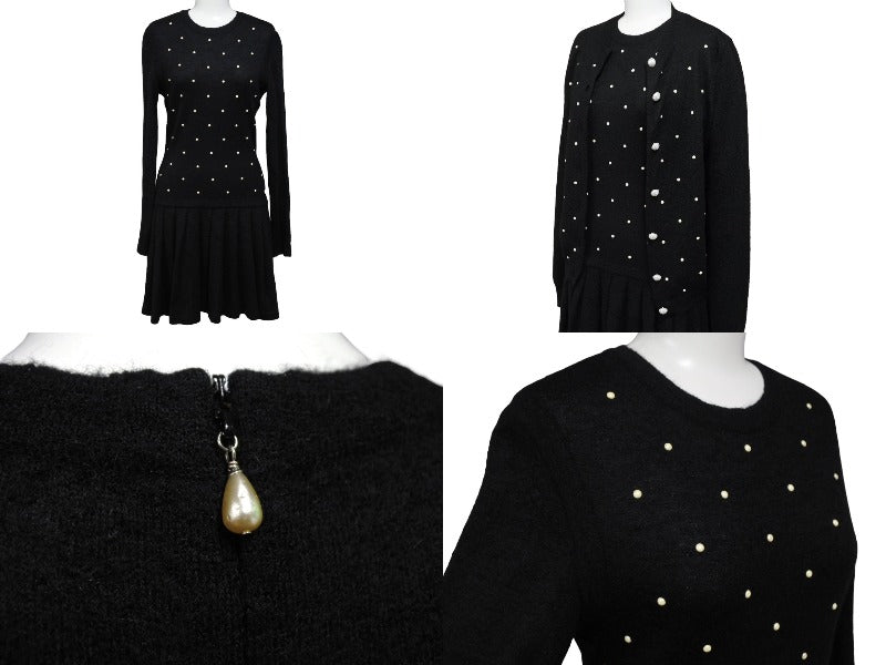 CHANEL シャネル アンサンブル サイズ36 ワンピース カーディガン P50094K06342 ココマーク パール ブラック 美品 中古 66788